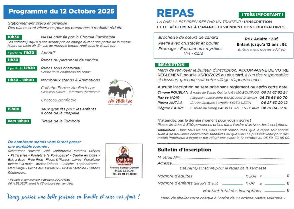 Elle a lieu chaque année le 2ème dimanche d’octobre dans l’enceinte du SANCTUAIRE où, TOUT, est alors A CONSTRUIRE. Elle fédère les énergies dans le travail comme dans la fête et procure des fonds à la paroisse