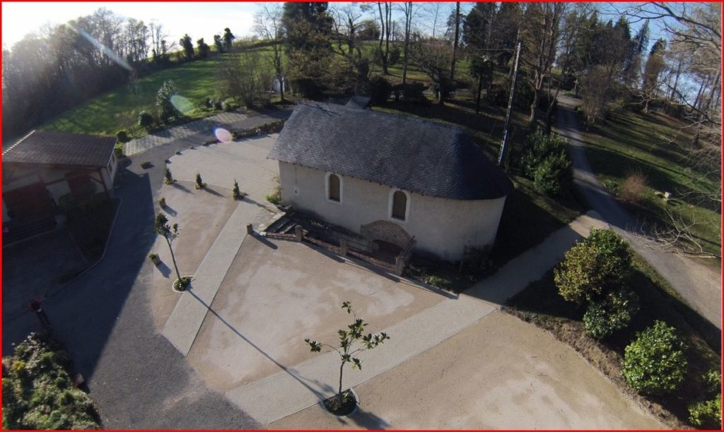 par un artisan local, devant la chapelle, l’autel et le bâtiment. Ces travaux ont étés financés en partie par le diocèse, la paroisse et par un appel à dons.